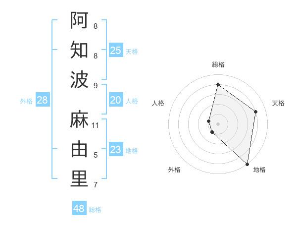 阿知波 麻由里さんの天格は25画の4点!