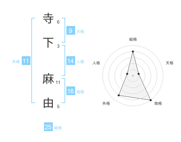 寺下 麻由さんの総格は25画の4点!