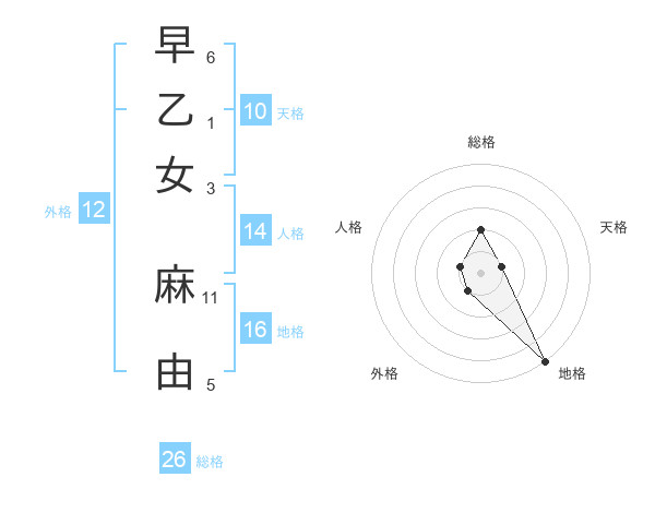 早乙女 麻由さんを姓名の画数から五運を鑑定