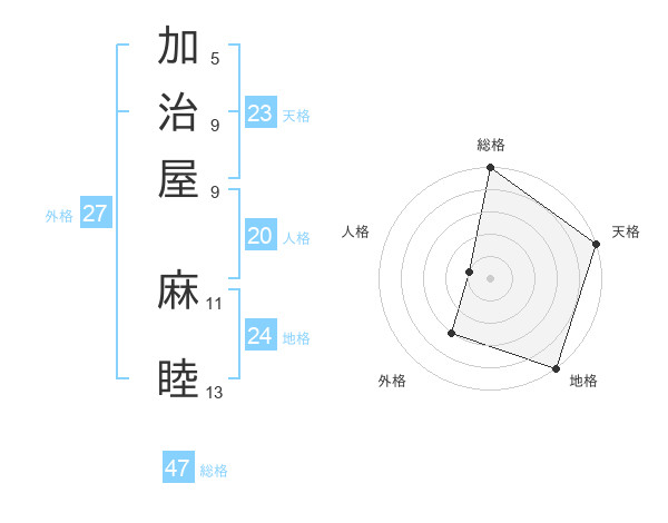 加治屋 麻睦さんを姓名の画数から五運を鑑定