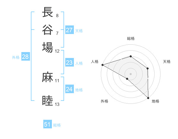 長谷場 麻睦さんを姓名の画数から五運を鑑定