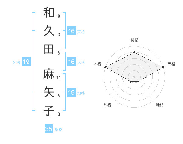 和久田 麻矢子さんを姓名の画数から五運を鑑定