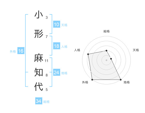 小形 麻知代さんの総格は34画の2点!