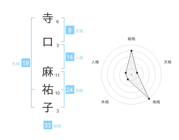 寺口 麻祐子さんの地格は24画の5点!