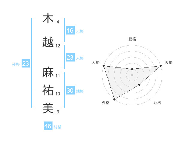 木越 麻祐美さんを姓名の画数から五運を鑑定