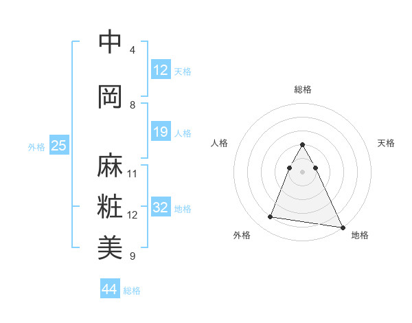 中岡 麻粧美さんの総格は44画の2点!