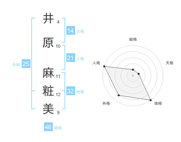 井原 麻粧美さんを姓名の画数から五運を鑑定