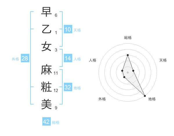 早乙女 麻粧美さんを姓名の画数から五運を鑑定