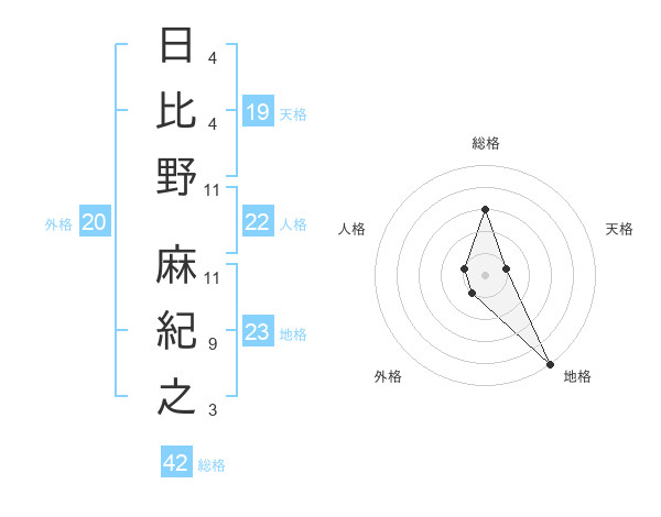 日比野 麻紀之さんの天格は19画の1点!