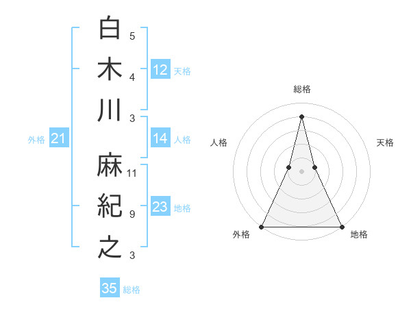白木川 麻紀之さんを姓名の画数から五運を鑑定