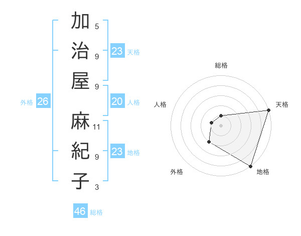 加治屋 麻紀子さんを姓名の画数から五運を鑑定