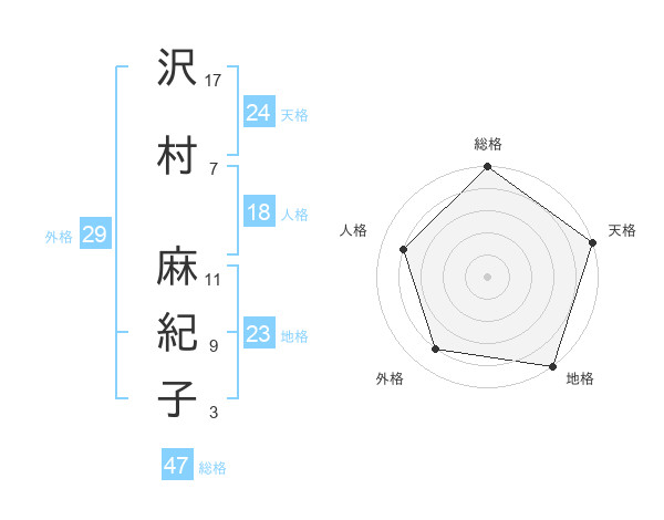 沢村 麻紀子さんを姓名の画数から五運を鑑定