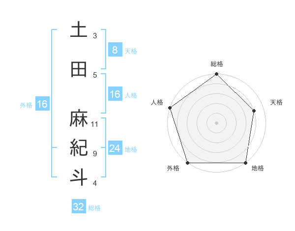 土田 麻紀斗さんを姓名の画数から五運を鑑定