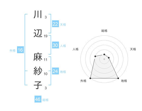 川辺 麻紗子さんを姓名の画数から五運を鑑定