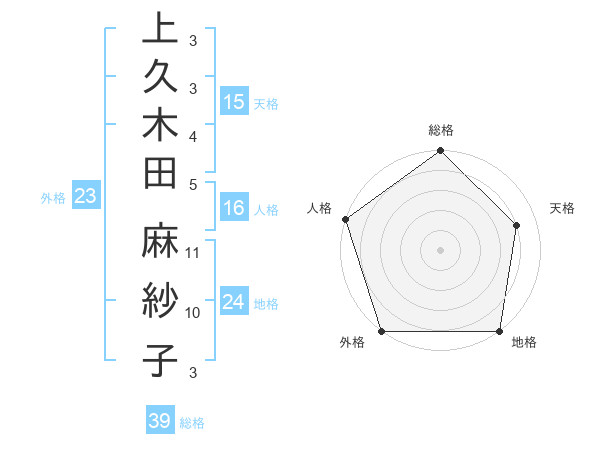 上久木田 麻紗子さんを姓名の画数から五運を鑑定