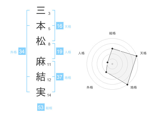 三本松 麻結実さんを姓名の画数から五運を鑑定