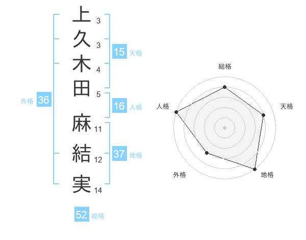 上久木田 麻結実さんを姓名の画数から五運を鑑定