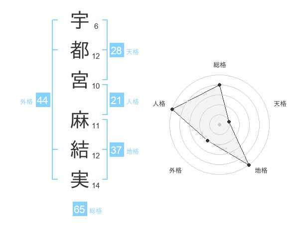 宇都宮 麻結実さんを姓名の画数から五運を鑑定
