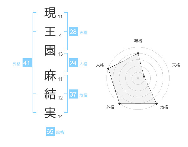 現王園 麻結実さんを姓名の画数から五運を鑑定