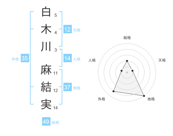 白木川 麻結実さんを姓名の画数から五運を鑑定