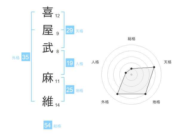 喜屋武 麻維さんの天格は29画の4点!