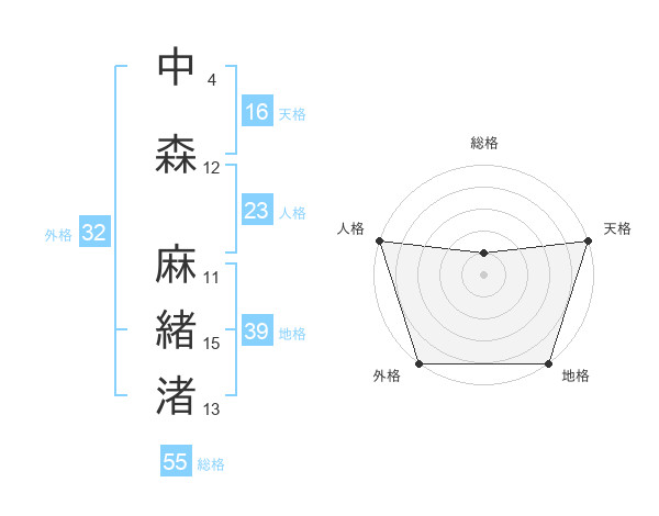 中森 麻緒渚さんを姓名の画数から五運を鑑定
