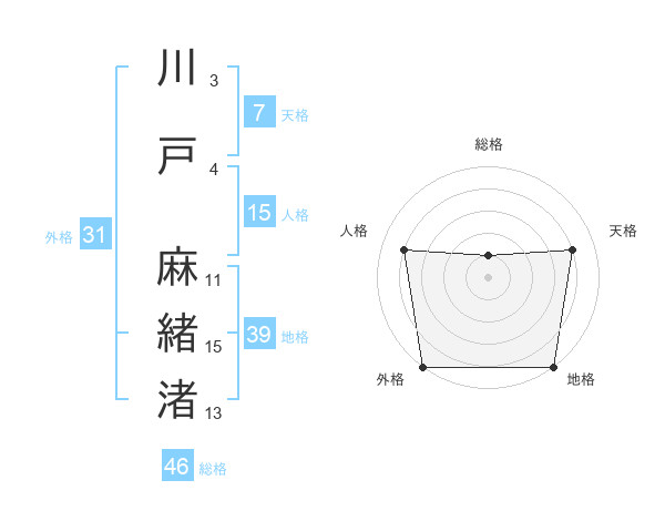 川戸 麻緒渚さんを姓名の画数から五運を鑑定