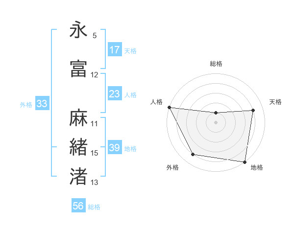 永富 麻緒渚さんを姓名の画数から五運を鑑定