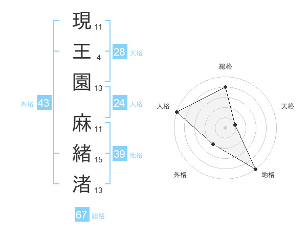 現王園 麻緒渚さんの総格は67画の4点!