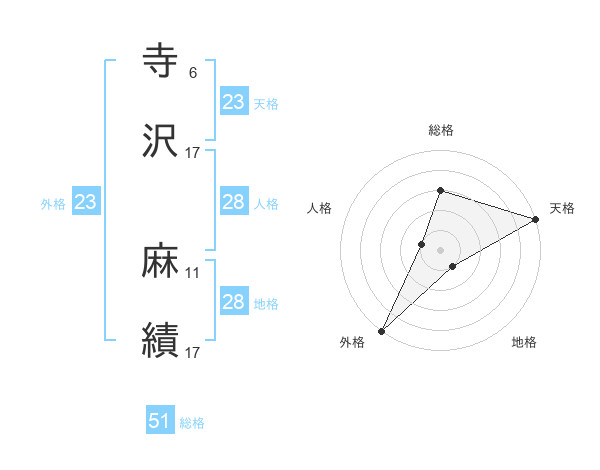 寺沢 麻績さんの天格は23画の5点!