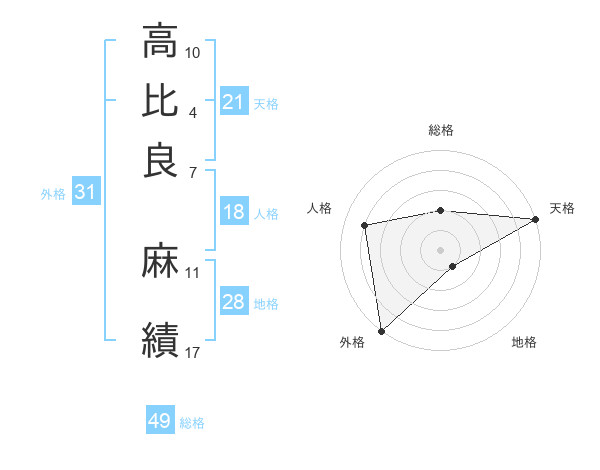 高比良 麻績さんを姓名の画数から五運を鑑定
