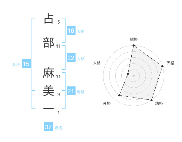 占部 麻美一さんを姓名の画数から五運を鑑定