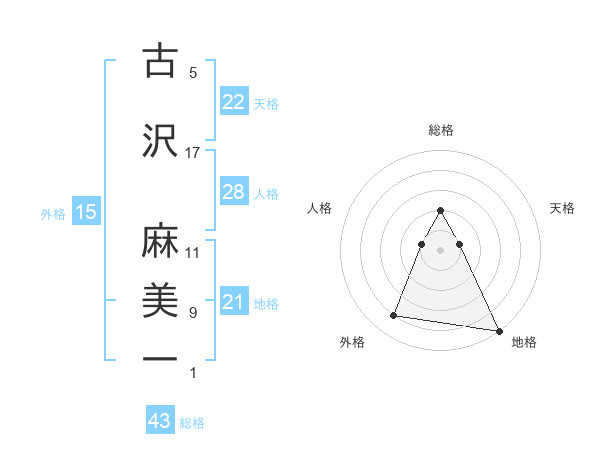 古沢 麻美一さんを姓名の画数から五運を鑑定