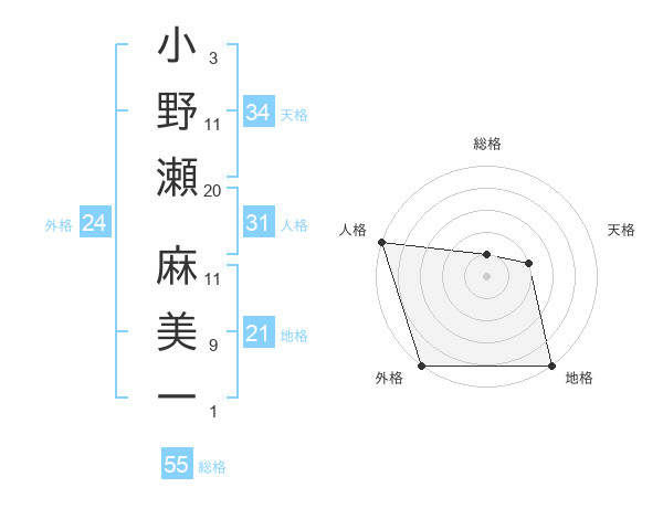 小野瀬 麻美一さんの総格は55画の1点