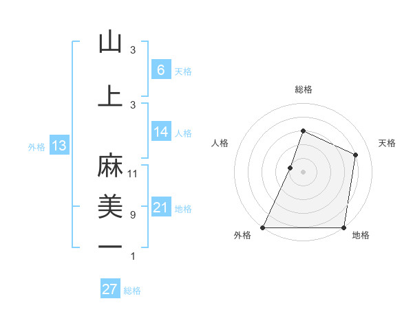 山上 麻美一さんの総格は27画の3点!