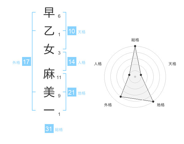 早乙女 麻美一さんを姓名の画数から五運を鑑定