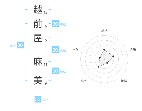 越前屋 麻美さんを姓名の画数から五運を鑑定