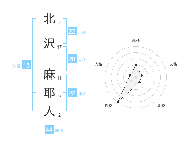 北沢 麻耶人さんを姓名の画数から五運を鑑定