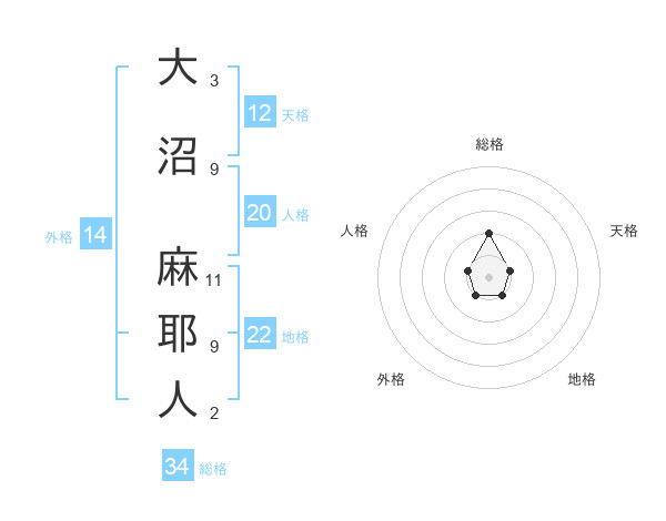 大沼 麻耶人さんを姓名の画数から五運を鑑定
