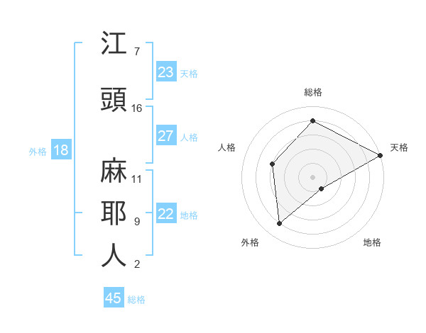 江頭 麻耶人さんを姓名の画数から五運を鑑定