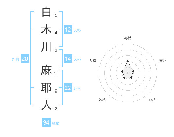 白木川 麻耶人さんを姓名の画数から五運を鑑定