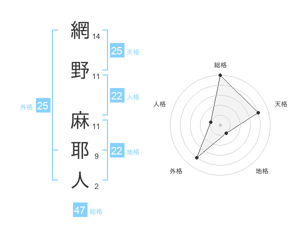 網野 麻耶人さんの総格は47画の5点!