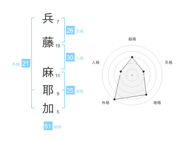 兵藤 麻耶加さんの総格は51画の3点!