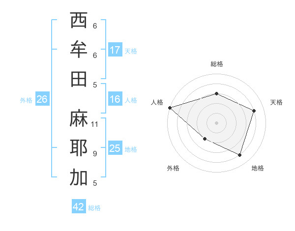 西牟田 麻耶加さんを姓名の画数から五運を鑑定