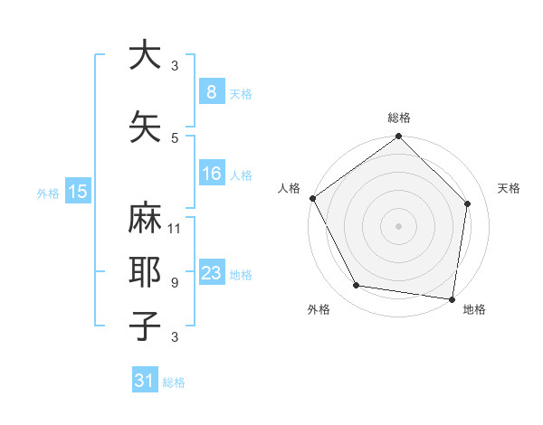 大矢 麻耶子さんを姓名の画数から五運を鑑定