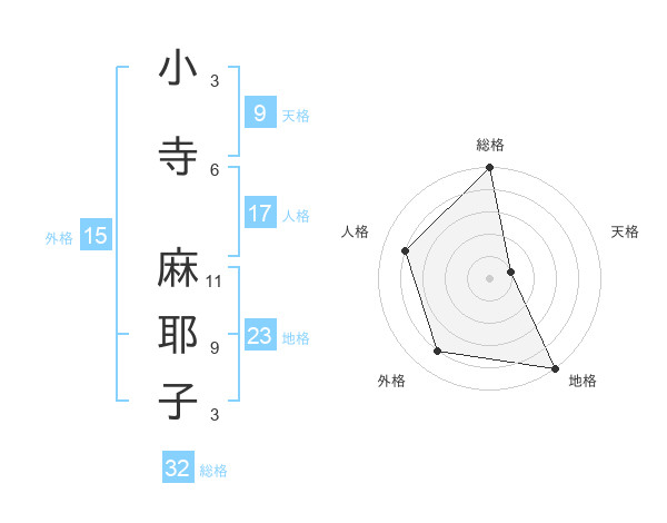 小寺 麻耶子さんの総格は32画の5点!