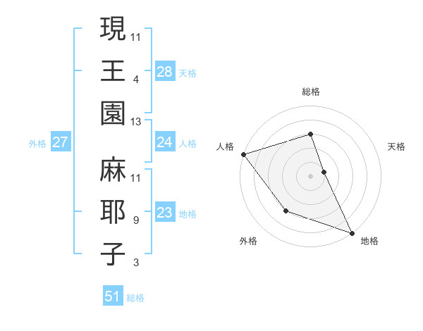 現王園 麻耶子さんを姓名の画数から五運を鑑定
