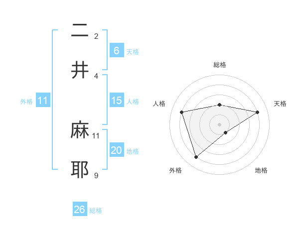 二井 麻耶さんの総格は26画の2点!