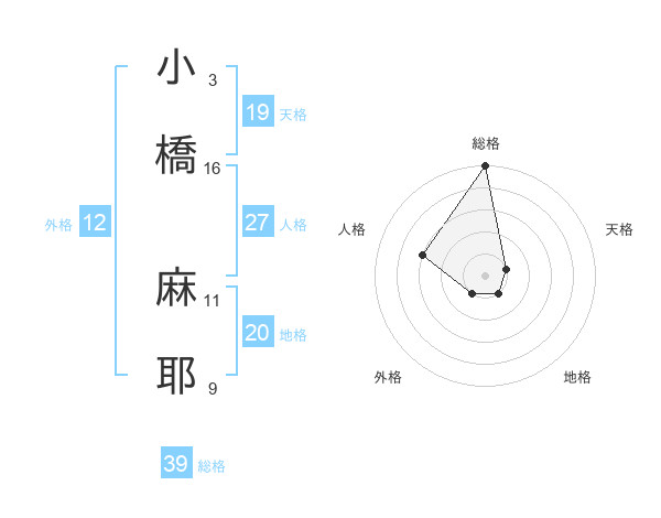小橋 麻耶さんを姓名の画数から五運を鑑定