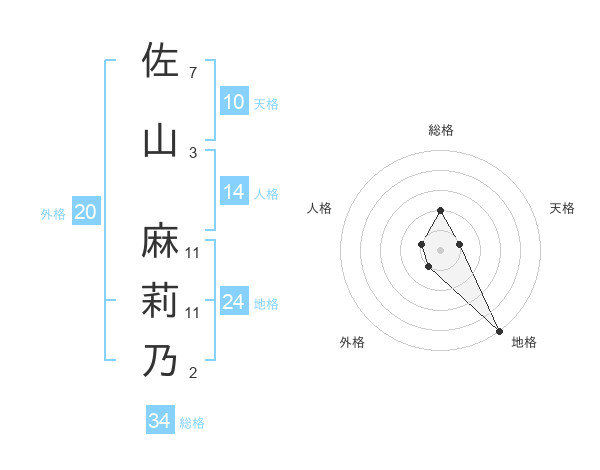 佐山 麻莉乃さんを姓名の画数から五運を鑑定